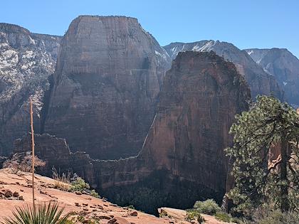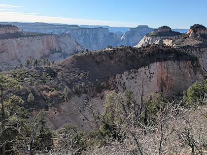 | We downhiked from Lava Point trailhead, so we mostly lost elevation, with about 1500 ft gain. This is the first scenic viewpoint. | |