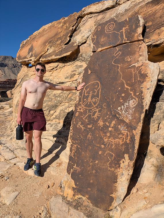 Ken at DaVinci petroglyph in Virgin River gorge