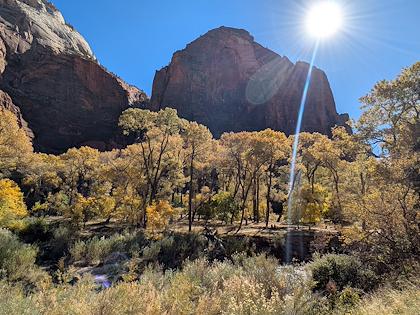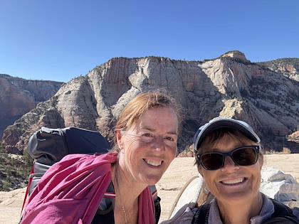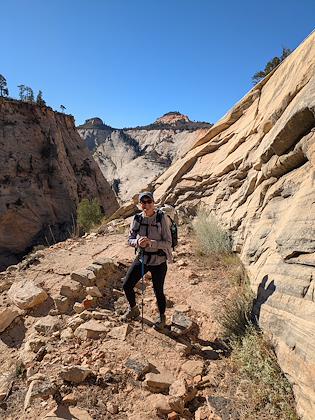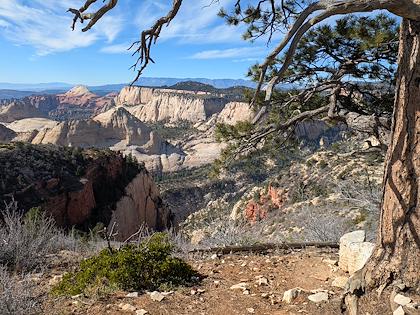 | We downhiked from Lava Point trailhead, so we mostly lost elevation, with about 1500 ft gain. This is the first scenic viewpoint. | |